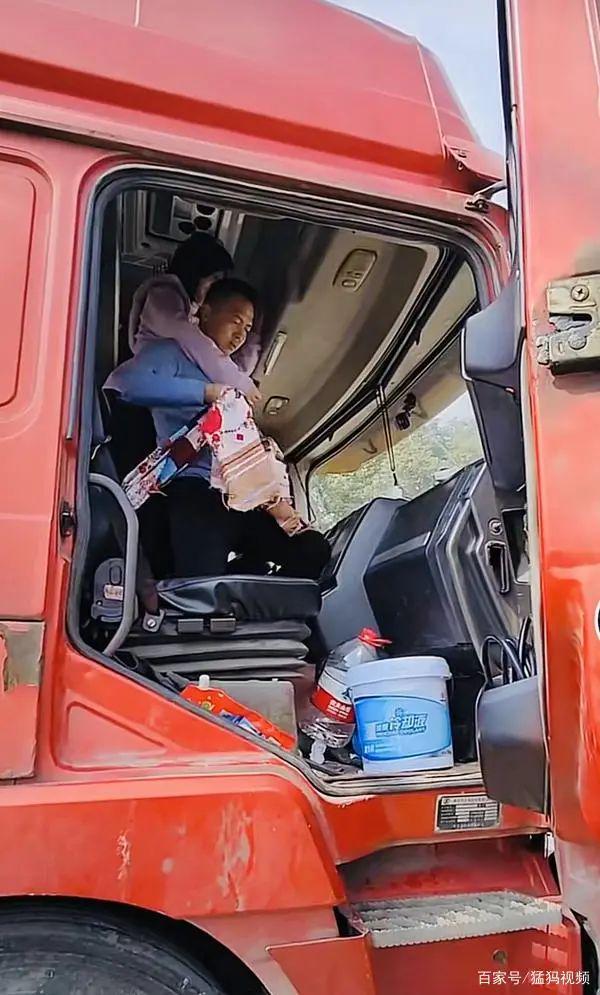 两个人,一辆车狭小的驾驶室成了夫妻俩一路遮风避雨的家。