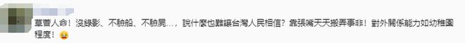 还有网友说,“草菅人命!没录像、不验船、不验尸……,说什么也难让台湾人民相信?靠张嘴天天搬弄是非!对外关系能力如幼儿园程度!”