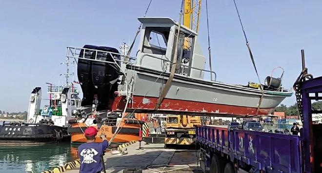 台湾海巡部门将翻覆的大陆渔船拖回金门进行调查