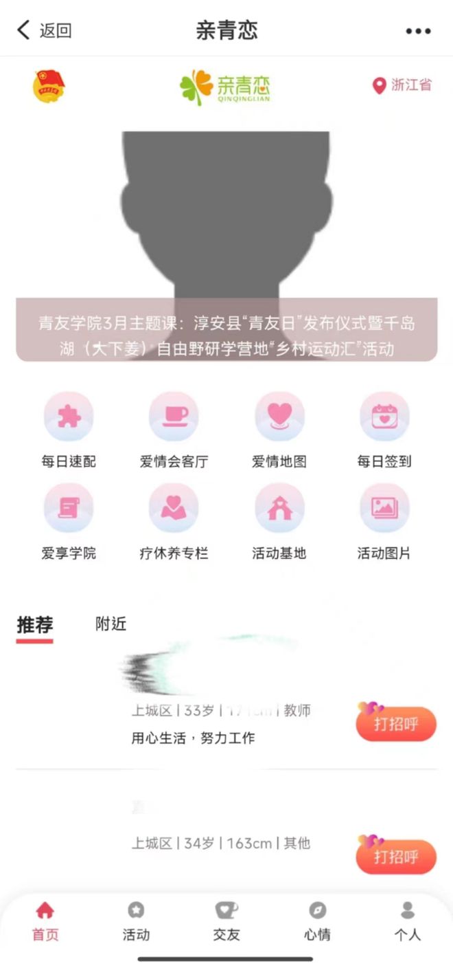 进入"浙里办"APP后,可以在"亲青恋"分区参与相亲交友。