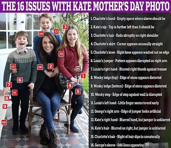 就如媒体猜测的,如果只是凯特重病,不能拍照片,那完全可以找一个人来和孩子们拍照,然后换上凯特的脸就好了,那样破绽也会少一点,可是,孩子们也不能拍照,王室只能拿孩子们的照片、凯特的照片来拼凑,导致漏洞百出。很快被各大报社发现。