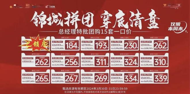 “限时拼团秒杀”“穿底清盘”“15万团购优惠倒计时”“新出50套工抵房”