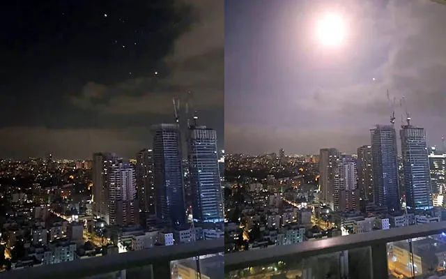 当地时间14日,以色列防空系统拦截伊朗的袭击