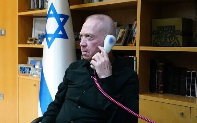 当地时间4月14日,以色列防长加兰特与美防长奥斯汀通话,图中人物为加兰特
