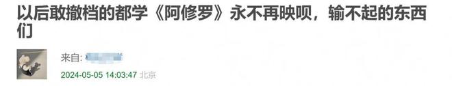 还有网友联想到近年来频繁的撤档事件,认为《摇太阳》起了一个坏头,从春节档、情人节、清明节到周末黄金档点映,行为可耻,希望大家真要撤档的话学习《阿修罗》彻底下映,别输不起。