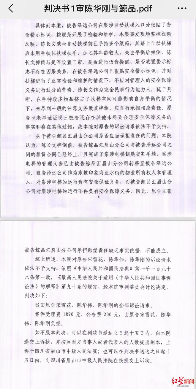 今年4月中旬,法院一审判决驳回老人家属的全部诉请,目前家属已在递交资料,准备上诉。